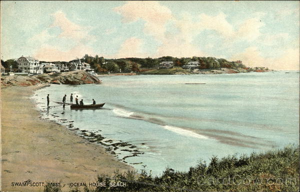 Front: 200 SWAMPSCOTT, MASS. OCEAN HOUSE BEACH. Back: THE HUGH C. LEIGHTON CO., MANUFACTURERS, PORTLAND, ME., U.S.A. 25015 Серо MESSAGE MAY BE WRITTEN ON THIS SIDE. and Island Possessions Cuba, Canada and For Foreign.