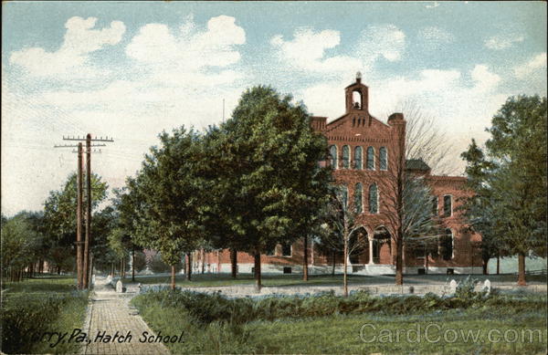 Front: gerry, Pa., Hatch School. PA IMAM Back: THE HUGH C. LEIGHTON CO., MANUFACTURERS, PORTLAND, ME., U.S.A. FRANKFORT /MAIN, GERMANY. No 2891. One Cent for United States, and Island Possessions, Cuba, Canada and For Foreign.