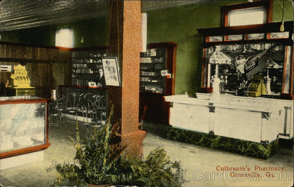 Front: 36 ***THA?? ARET 424 Coca-Cola OLENCHES Culbreath's Pharmacy, Grantville, Ga. 16 Back: 32917-MADE FOR CULBREATH'S PHARMACY, GRANTVILLE, GA. Domestic and Two Cents
