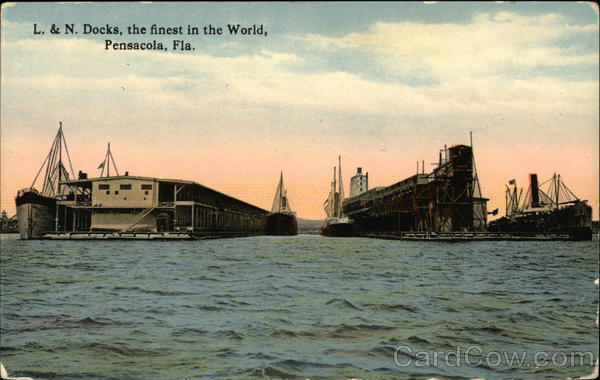 Front: L. & N. Docks, the finest in the World, Pensacola, Fla. Back: 18 1781 A5325 PHOTOCHROM 202 D. THIS SPACE FOR ADDRESS ONLY.