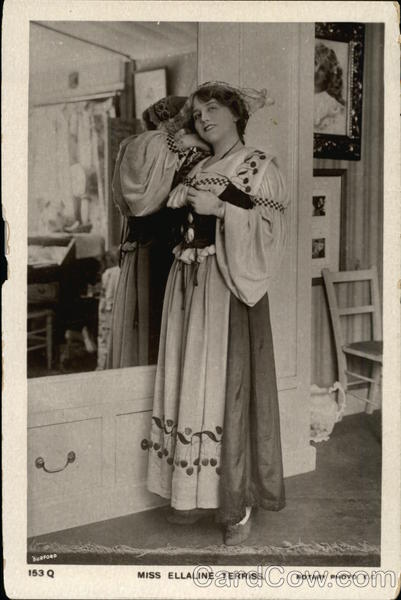 Front: BURFORD 153 Q MISS ELLALINE TERRISS. ROTARY PHOTO. E.C Back: ROTARY PHOTOGRAPHIC SERIES For Inland Postage only, this Space as well as the Back may now be used for Communication (Post Office Regulation). d. 1d.