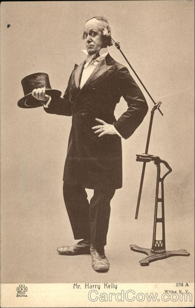 Front: N.Y. PO.STAR Mr. Harry Kelly 238 A Withe N. Y. Back: Collection of Leading Artists of the American stage. Only authorized publishers Darwin D, 5.lberer & Bros P. O. STA. D. N. Y City. 17 303 m FOST CARD IN HUNGARY MADE