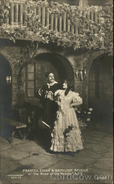 Front: ALLUMNES THROT FRANCES STARR & HAMILTON REVELLE in The Rose of the Rancho" Act II "ROTOGRAPH" B1937 Back: THIS SPACE MAY BE USED FOR WRITING THIS CARD IS À REAL PHOTOGRAPH ON BROMIDE PAPER THE ROTOGRAPH Co., N.Y. CITY 53