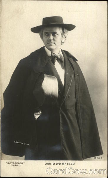 Front: O. SARONY Co.,N.Y. "ROTOGRAPH" DAVID WARFIELD B 327 Back: ALID A NOS MARCO PLAGS STARP MERE ONE SENT 47. ******. TWO GENTS.