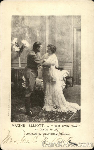 Front: CARTER & GUT, PUBLISHERS, N.Y. Rally Wins HER OWN WAY MAXINE ELLIOTT, IN "HER OWN WAY," BY CLYDE FITCH. CHARLES B. DILLINGHAM, MANAGER. t Back: TWO CENTS