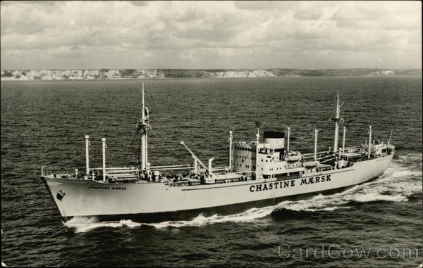 Front: CHASTINE MÆRSK CHASTINE MÆRSK ********** Back: Copyright Skyfotos, Lympne Airport No. 9610. 1226 m.s. "CHASTINE MAERSK WITH GREETINGS SKYFOTOS SHIPS SERIES ADDRESS