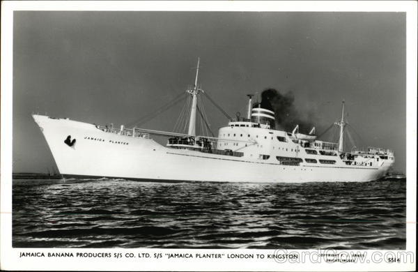 Front: JAMAICA PLANTER JAMAICA BANANA PRODUCERS S/S CO. LTD. S/S "JAMAICA PLANTER" LONDON TO KINGSTON COPYRIGHT F. J. ARMES BRIGHTLINGSEA S514 Back: 1088 THIS IS A REAL PHOTOGRAPH ADDRESS