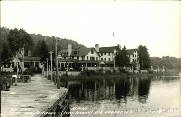 Front: LISTEN ALPINE HOTEL AND COTTAGES (DODR COUNTY) EGG HARBOR, Wis. Back: POST CARD EK ALL RIGHTS RESERVED THE L. L. COOK CO., MILWAUKEE .c) J