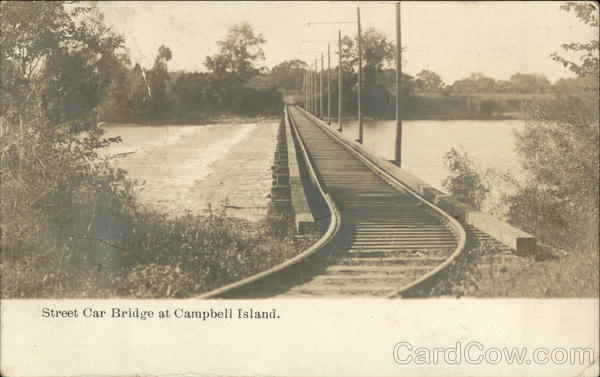Front: Street Car Bridge at Campbell Island. Back: doo RxDx #¹4x 02 لها 1200 831 38000 st ONTSENT MICH Revx H. Dx Garret, Milfon miche Orchard Lake FEB 25 0719 MICH. *.*