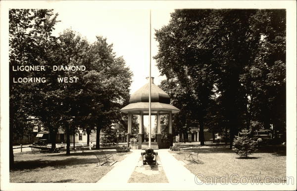 Front: LIGONIER DIAMOND LOOKING WEST (143 OUTFITT WOMEN OOD JON Back: Sí Ligmia, Indiana نکالنا or PA IN 1