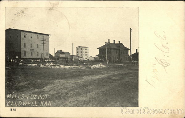 Front: 11 MILLS DEPOT CALDWELL KAN 1678 529 25 Back: ALDWEL 18 PM KANS 000 A. A. Enders Elizabetteville Dauphin boor Pa