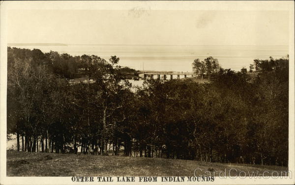 Front: ORTER TAIL LAKE FROM INDIAN MOUNDS Back: 6. Minn = STAMP= HERE O Here is the lake where we are vod here except Crops are g wheat is rusty. Joo cool for comfort today. so degrees highest yusberday 70 In R. Henching C)
