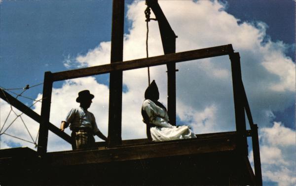 "Penna. Dutch Folk Festival, Kutztown, Penna." (Held annually the first week of July) Re-enacting the hanging of Suzanna Cox. Photographed at Penna. Dutch Folk Festival, Kutztown, Penna. рно
