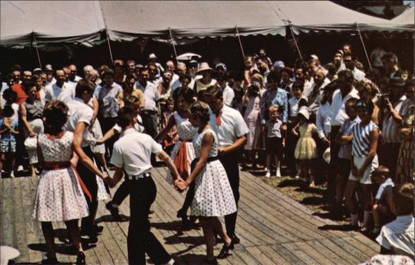 ""Penna. Dutch Folk Festival, Kutztown, Penna." (Held annually the first week of July) Old fashioned Folk dancing at the Festival. Photographed at Penna. Dutch Folk Festival, Kutztown, Penna. рно