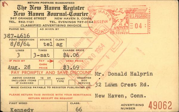 PLEASE RETURN THIS INVOICE WITH YOUR REMITTANCE New Haven, Conn.