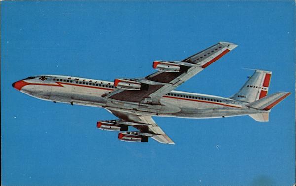 | The 600 mile-an-hour American Airlines 707 jet flagship - flash across the nation's skies, over the airlines continental routes - coast-to-coast in approximately 4 1/2 hours - offering comfort, convenience and dependability to air travelers. |