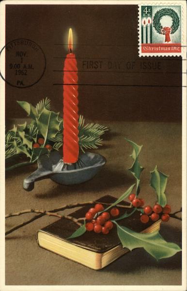 Front: NOV. 9.00 A.M. 1962 PA 4c 11.8. HOLD Christmas 1962 FIRST DAY OF ISSUE Back: Photocolor 52294 1222