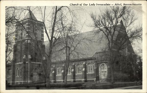 Front: 11 ***** Church of Our Lady Immaculate - Athol, Massachusetts 20 **** Back: Merrimack Post Card Co., 110 Merrimac St., Haverhill, Mass. This Side for Address