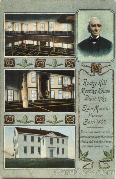 Rocky Hill meeting house built 1785. Elder morton Pastor born 1804. The minds blem and the storms bear upon that house and it fell not or it was founded upon a rock