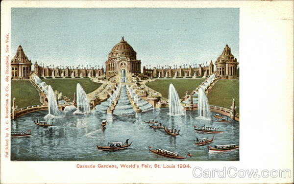 Front: Published by A. C. Bosselman & Co., 469 Broadway, New York. mimin mili Lam ICH Cascade Gardens, World's Fair, St. Louis 1904. Back: One Cent for United States, and Island Possessions, Cuba, Canada and For Foreign.
