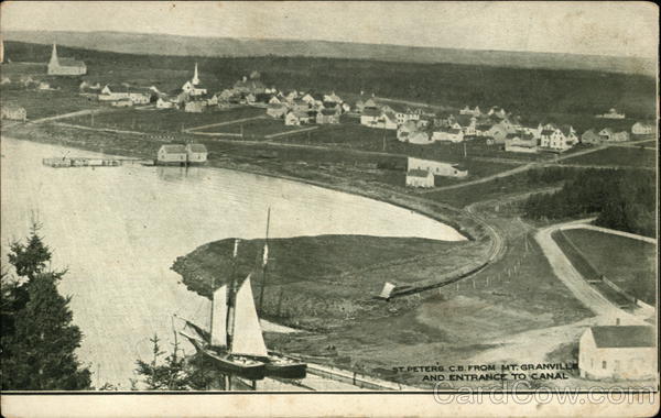 Front: JERT Yr !! ST.PETERS C.B.FROM MT. GRANVILLE AND ENTRANCE TO CANAL Back: 2° PUBLISHED BY THE MCCOY PRINTING COMPANY, MONCTON, N.B. Two AND US.
