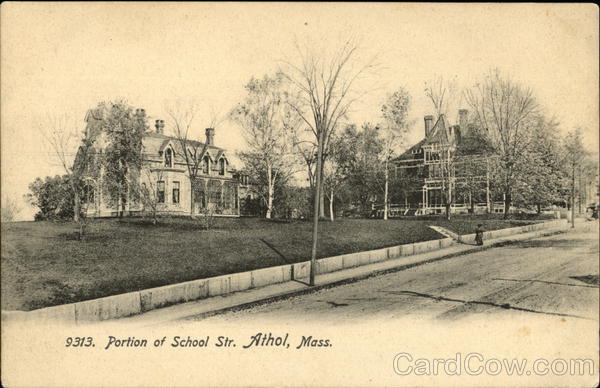 Front: 9313. Portion of School Str. Athol, Mass. Back: Published by CE Ingall. THIG SIDE FOR THE ADDRESS. Stand Here Domee 0.0