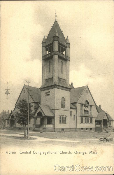Front: A 21361 Central Congregational Church, Orange, Mass. Back: The Retograph Co., N. Y., City. (Germany.) PIN Two cents