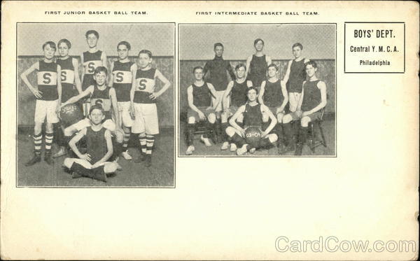 Front: FIRST JUNIOR BASKET BALL TEAM. SS SPIDERS FIRST INTERMEDIATE BASKET BALL TEAM. 03-04 BOYS' DEPT. Central Y. M. C.A. Philadelphia Back: POST CARD.... PUT A ONE CENT STAMP HERE