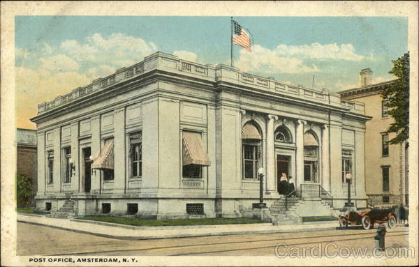 Front: muy POST OFFICE, AMSTERDAM, N. Y. ******* Back: MADE IN U, S. A PUBLISHED BY CHAS. W. HUGHES, MECHANICVILLE, N. Y. STAR QUALITY FOR WRITING MESSAGES MERICAN A-80301 3.25 DOST THIS SPACE FOR ADDRESS ONLY.