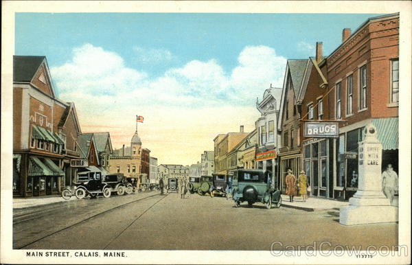 Front: Woh 11 10 7 17 MAIN STREET, CALAIS, MAINE. AMA DRUGS XS84S DRIVE @ WITH CARE 113715 Back: C. T. AMERICAN ART COLORED. CHICAGO HERE
