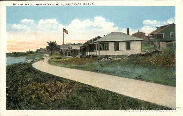 Front: NORTH WALL, HOMESTEAD, R. I., PRUDENCE ISLAND. 0 Back: MFD CAMP Br MBRIKS EICHNOR DUALIEY 122620. DOST THIS SPACE FOR ADDRESS ONLY