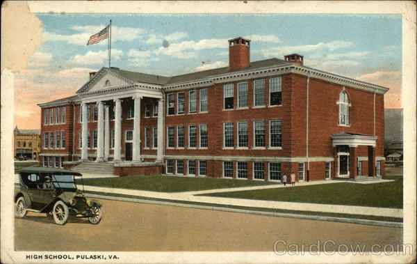 Front: CEIL HIGH SCHOOL, PULASKI, VA. Back: SUPERIOR S. A. MADE IN U PUBLISHED BY J. P. BELL CO, INC., LYNCHBURG, VA. -7738 CHROME QUALITY FOR WRITING MESSAGES. 9.4.S. A-60842 2012 Horsea Tanys. op. 9. C. of c.co Mr He Marcus Hose, Fu