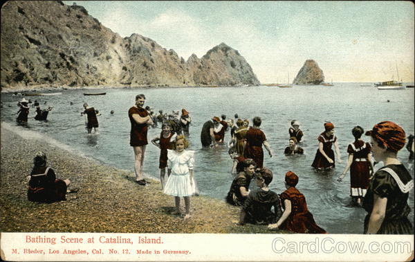 Front: Bathing Scene at Catalina, Island. M. Rieder, Los Angeles, Cal, No. 12. Made in Germany. 1271 Back: TWO CENTS