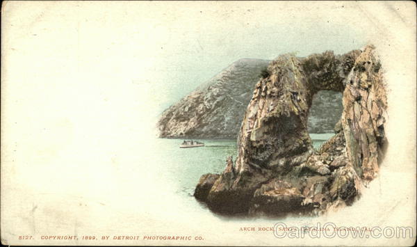 Front: 5127. COPYRIGHT, 1899, BY DETROIT PHOTOGRAPHIC CO. ARCH ROCK, SANTA CATALINA ISLAND, CAL. Back: PRIVATE MAILING CARD. Authorized by Act of Congress of May 19th, 1898. (POSTAL CARD-CARTE POSTALE.) DOMESTIC: FOREIGN: Two CENTS.