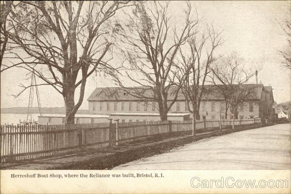 Front: mul unamamın *****, P Herreshoff Boat Shop, where the Reliance was built, Bristol, R. I. 5 Back: PUBLISHED BY STEVENS & Co., JEWELERS, BRISTOL, R. 1. FROM BRISTOL, RHODE ISLAND THIS SIDE FOR ADDRESS