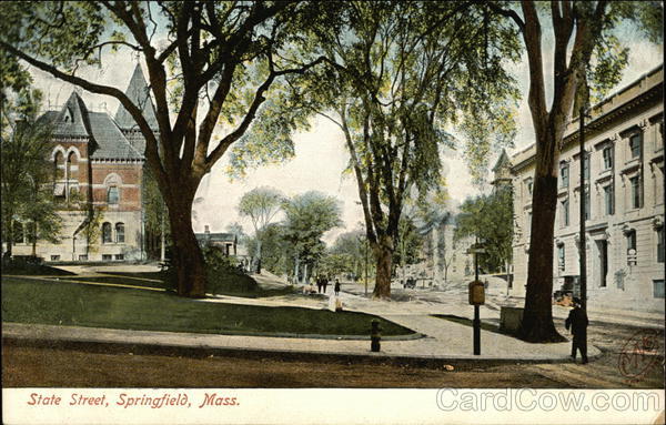 Front: State Street, Springfield, Mass. Back: онот No. 7881. The Metropolitan News Co., Boston, Mass. & Germany. COPYR We DEMARK Post Card & TWO CENTS