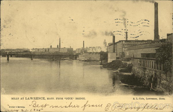 MILLS AT LAWRENCE, MASS. FROM "DUCK" BRIDGE.