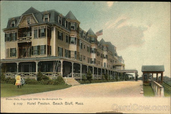 Front: Photo. Only, Copyright 1905 by the Rotograph Co. XX G 7132 Hotel Preston, Beach Bluff, Mass. Back: The Kotograph Co., N. Y., City. (Germany.) RINT 6-