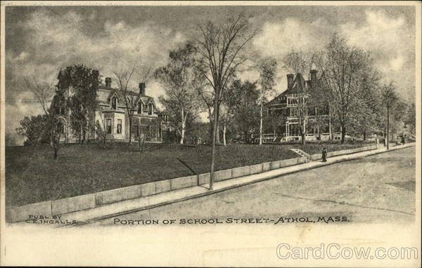 Front: PUBL. BY C.E.INGALLS MI PORTION OF SCHOOL STREET-ATHOL, MASS. Back: ممثله HOL 19 TA J6 MASS. Но Дома Mach. Шас NERTEN 1902 UNITED STATES OF 1206 FRANKLIN 1750 DEG ONE CENT) de 9061 20 HIVON LUON 6-