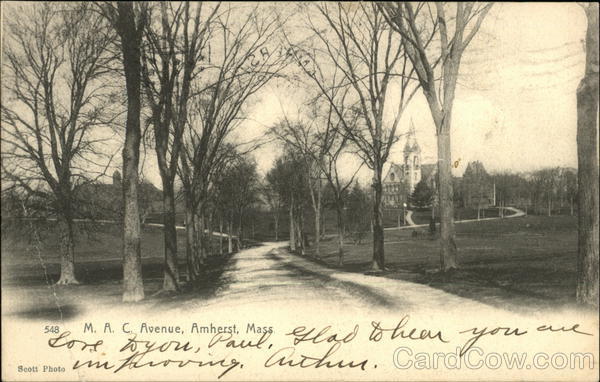 Front: 548 M. A. C. Avenue, Amherst, Mass Glad thear Love to you, in widge Authen. Scott Photo on a Back: Germany. FEST HEA 8-30A MASS M. Paul Clones. 19 NERIEN 1902 NITED ST iams TES OF F06 FRANKLIN 1790 Warner Memimach Comity N.H. 3