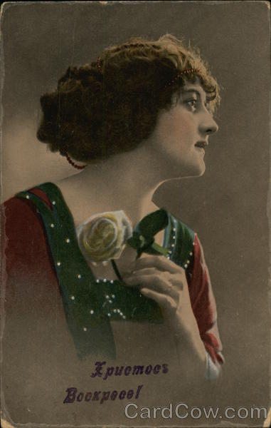 Lady holding a rose.