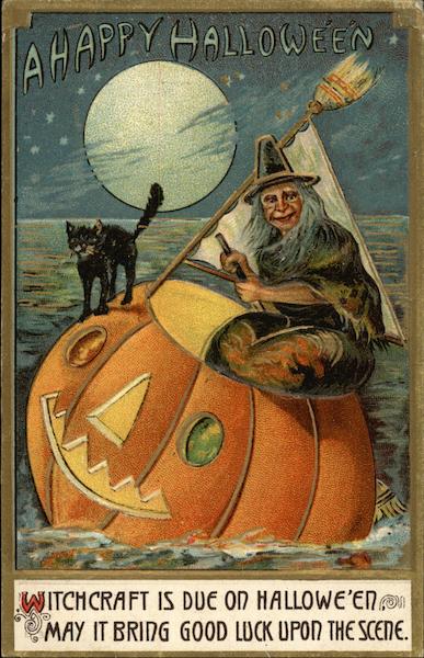Front: AHAPPY HALLOWEEN WITCHCRAFT IS DUE ON HALLOWE'EN MAY IT BRING GOOD LUCK UPON THE SCENE. Back: BOOST CARD Hun 31 7 AM RECIO: CEN ARD OCT 7.80 Ralph P.M. UN FERTIL S Mrs. Alive Hopkins So Scituate ая
