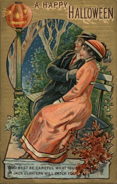 Front: A HAPPY HALLOWEEN YOU'D BEST BE CAREFUL WHAT YOU DO OR JACK O'LANTERN WILL CATCH YOU Back: DODOO 389 n. M. F. your, ever true. Sosimy Co. Osa 17 00000 1910 R- Importent. при Mr. Ralph Nichole Foster Centre, R.I. Bopd777