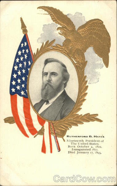 Front: RUTHERFORD B. HAYES Nineteenth President of The United States. Born October 4, 1822. Inaugurated 1877. Died January 17, 1893. Back: AND CANADA, FOREIGN, Two CENTS.