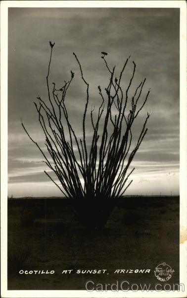 Front: COCOTILLO AT SUNSET, ARIZONA Frachers FOTOS POMONA, CALE Back: Pub. by Frasher's, Inc., Pomona, Calif. 18 11 PI