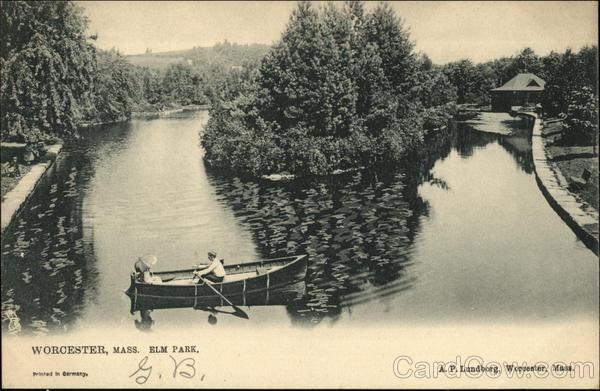 Front: WORCESTER, MASS. ELM PARK. G.B. Whydy A. P. Lundborg, Worcester, Mass. Back: Raphael Tuck & Sons' Post Card Series No. 1037. "WORCESTER, Mass. ' ART PUBLISHERS TO THEIR MAJESTIES THE KING AND QUEEN. SODES ANTISTIC (400)