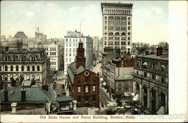 Front: IM פינו 88 8e ננגוננם Old State House and Ames Building, Boston, Mass. Back: Leipzig, Dresden. 5798 Published by The New England News Company, Boston Mass, ہیں جو Two cents