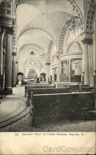 Front: 15. CA Le S pen Interior View of Union Station, Dayton, O. Back: The Louis Traxler Co., Dayton, Ohio. DOMESTIO THIS SPACE FOR ADDRESS ONLY