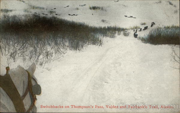 Front: Switchbacks on Thompson's Pass, Valdez and Fairbank's Trail, Alaska. Back: Photo by La Voy. Lowman & Hanford Co., Publ., Seattle, Wash. No. 5087. THIS SPACE MAY BE USED FOR WRITING 500 GREAT BRITAIN FOREIGN: TWO CENTS.