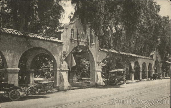 Entrance, Glenwood Mission Inn. Riverside, Calif. Post Cards of Quality. The Albertype Co., Brooklyn, N. Y. 12 motricycle
